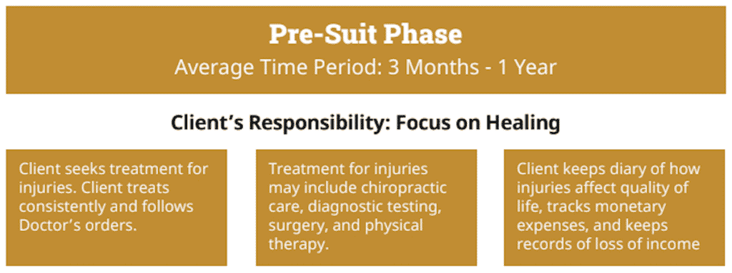 The pre-suit phase of a personal injury case lays the groundwork to recover the maximum compensation for a client’s losses. For the best outcome, clients must follow their attorney’s instructions.